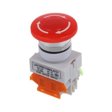 Botón de Presión de Paro de Emergencia, Iluminado / No Iluminado Sin Iluminación, Tamaño 22mm, Acción Sostenida con Mecanismo de Giro para Liberar, Tipo de Operador Hongo de 40 mm de diámetro, Normas IEC, CSA, UL, CE, Material de la Cabeza Caucho nitrilo.