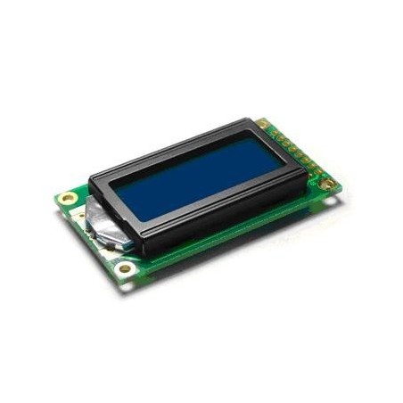 Pantalla LCD con 2 líneas de 8 caracteres. backlight color azul y caracteres color blanco.