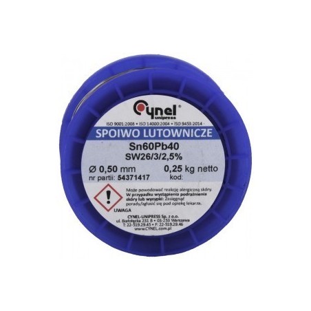 Rollo de soldadura de 0.5mm de diámetro, de composición 60/40 de estaño/plomo. Pesa 100 gramos.