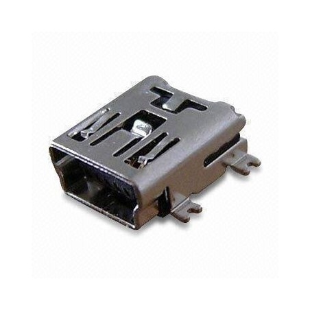 El conector Mini-USB tipo B horizontal con contacto de aleación de cobre. Es compatible con la versión USB 2.0. Cuenta con 5 pines para montaje superficial.
