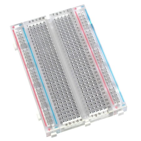 Esta protoboard es ideal para usar en pequeños proyectos donde el espacio es importante y no se tenga que soldar, cuenta con 400 puntos de conexión suficiente para construir y probar circuitos simples.
