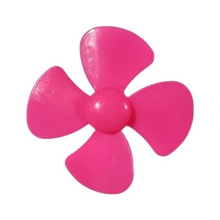 Hélice de 4 aspas de plástico color Rosa para motores que tengan eje de 2mm con diámetro de rotación de 40 mm. Son utilizados para proyectos escolares las cuales necesiten ventiladores, molinos de viento, generadores de energía y otros.