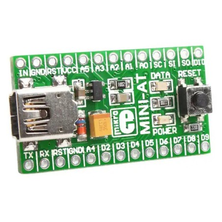Esta placa es un pequeño sistema de desarrollo. Cuenta con ATmega328, USB-UART, circuito de reinicio e indicadores LED. Es compatible con enchufes DIP26 estándar.