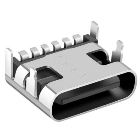 Conector USB Tipo Hembra SMD TYPE-C-31-M-12 es solo el cabezal del Conector Tipo C SMD USB-C Hembra tipo 3.1 de 10 pines de conexión (6 de datos +4 de fijación) de montaje superficial con clavijas fijas bidireccionales.