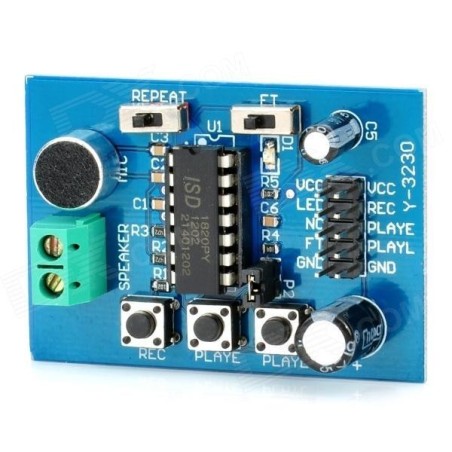 El módulo ISD1820 permite la creación de un sistema de grabación y reproducción de audio minimalista que permite agregar mensajes simples a cualquier dispositivo o proyecto electrónico