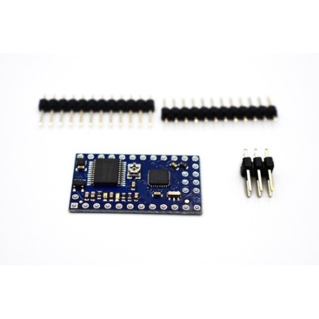 Controlador para Robot muy compacto y completo que integra en una misma tarjeta un microcontrolador ATmega328P AVR y un driver para motor de 2 canales todo en una sola tarjeta compacta y pequeña de 24 pines.