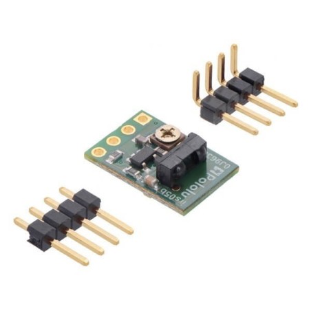 Este módulo cuenta con un sensor IR de 38 kHz con ganancia fija y un IR LED correspondiente con circuito oscilador para hacer un pequeño sensor de proximidad. Esta versión de alto brillo dibuja un promedio de 16 mA a 5 V y tiene un rango de detección típico de hasta aproximadamente 24 pulgadas (60 cm).